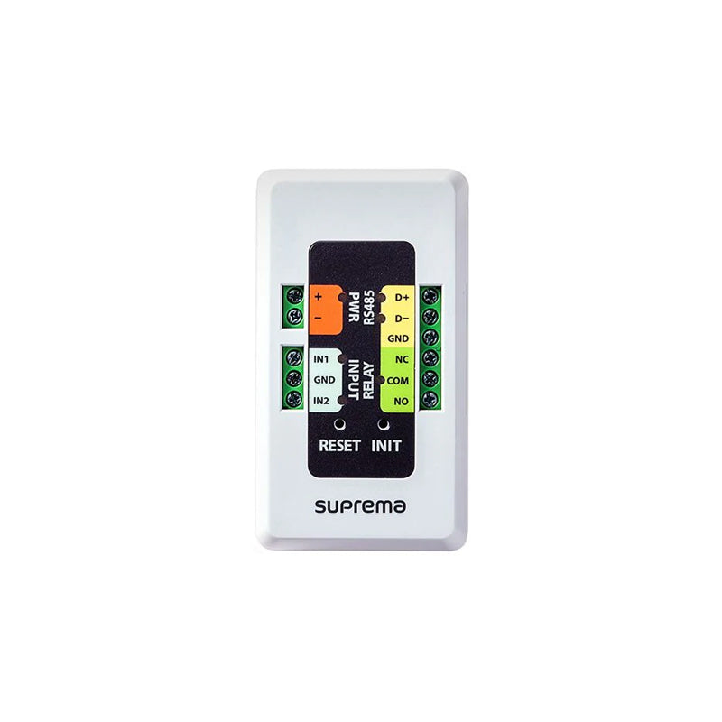 Provides secure door control and I/O expansion via encrypted communication when paired with other Suprema access devices.