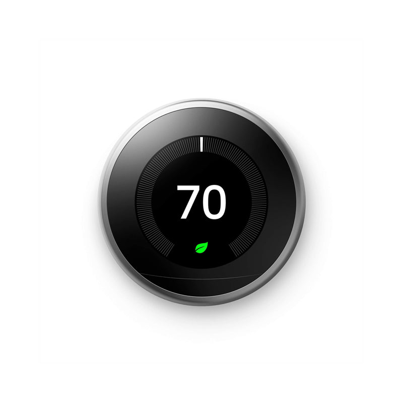 The Nest T3016US Carbon Black 3rd Generation Learning Thermostat automatically learns your schedule and temperature preferences to help reduce energy use without sacrificing comfort. With remote access, energy reports, and smart alerts, it delivers hands-free efficiency and modern style for nearly any home HVAC system.