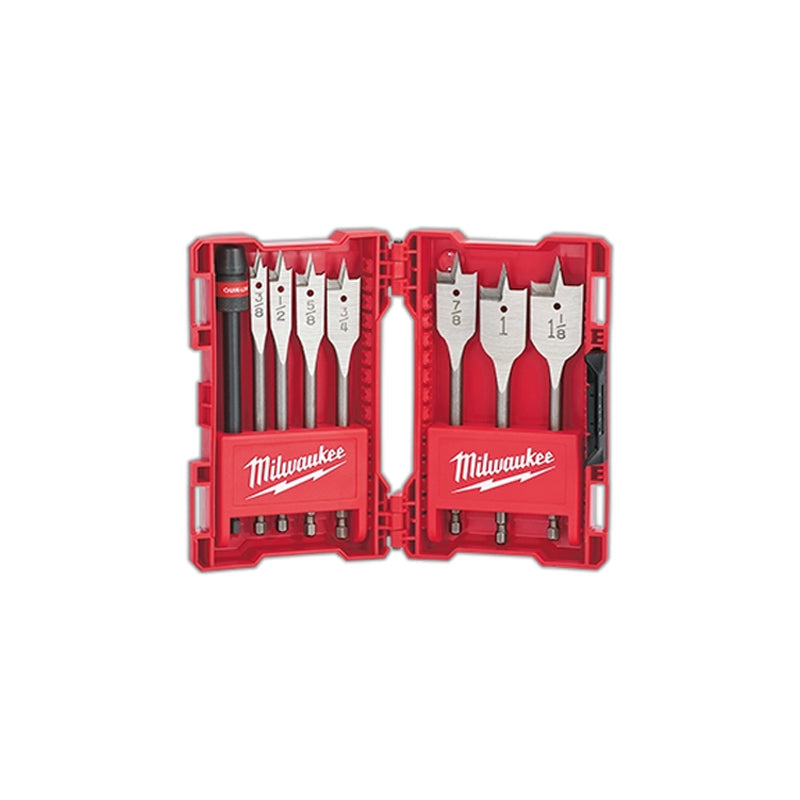 Milwaukee Tool 49-22-0175 8-Piece Flat Boring Bit 6-inch Universal Set provides extended reach and clean, controlled boring for wood applications in tight or hard-to-access areas. This versatile set includes multiple bit sizes and a QUIK-LOK™ extension for fast changes and efficient drilling with reduced vibration.